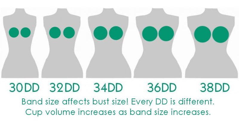 The diagonal boxes on the chart show which band/cup combinations have the same breast tissue volume. So a 30F and a 32E both have have the same volume. The picture below is a crude representation of how the same cup volume looks on different band sizes.